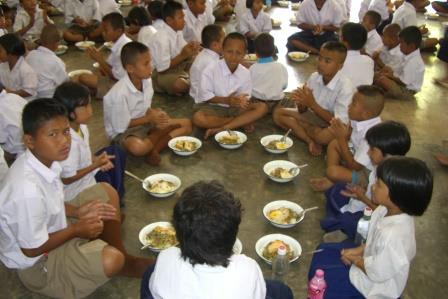 Marys Venner samlet deretter penger til bygging av skolekjøkken og innkjøp av mat. Lærere og elever lager maten sammen, en viktig læring for barna. Når maten er serveringsklar, rører ingen maten før alle ser at det er nok mat til alle.