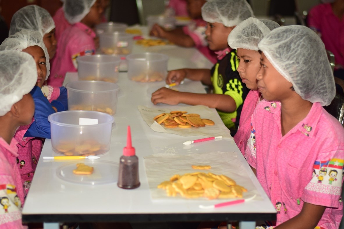 De aller yngste barna deltar i et matprogram hvor Marys Venner sørger for at de får tilgang til næringsrik mat slik at de ikke utvikler mangelsykdommer. Tidligere ble mange barn blinde av den ensidige kosten som bare bestod av «sticky rice». Matprogrammet har gjort at man ser en betydelig bedring på dette.